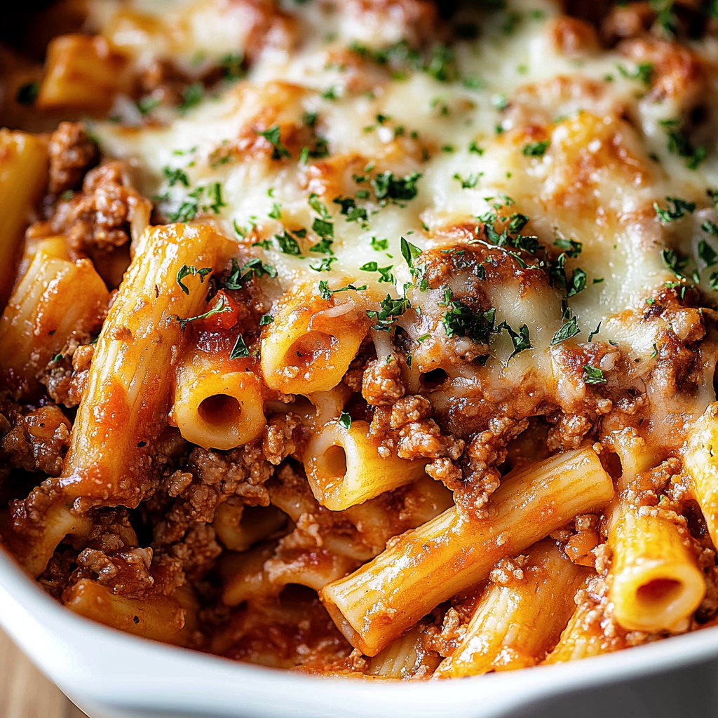 Irresistible Baked Ziti with Ground Beef Recipe Delight