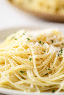 - Plate hot pasta topped with freshly grated Parmesan cheese.